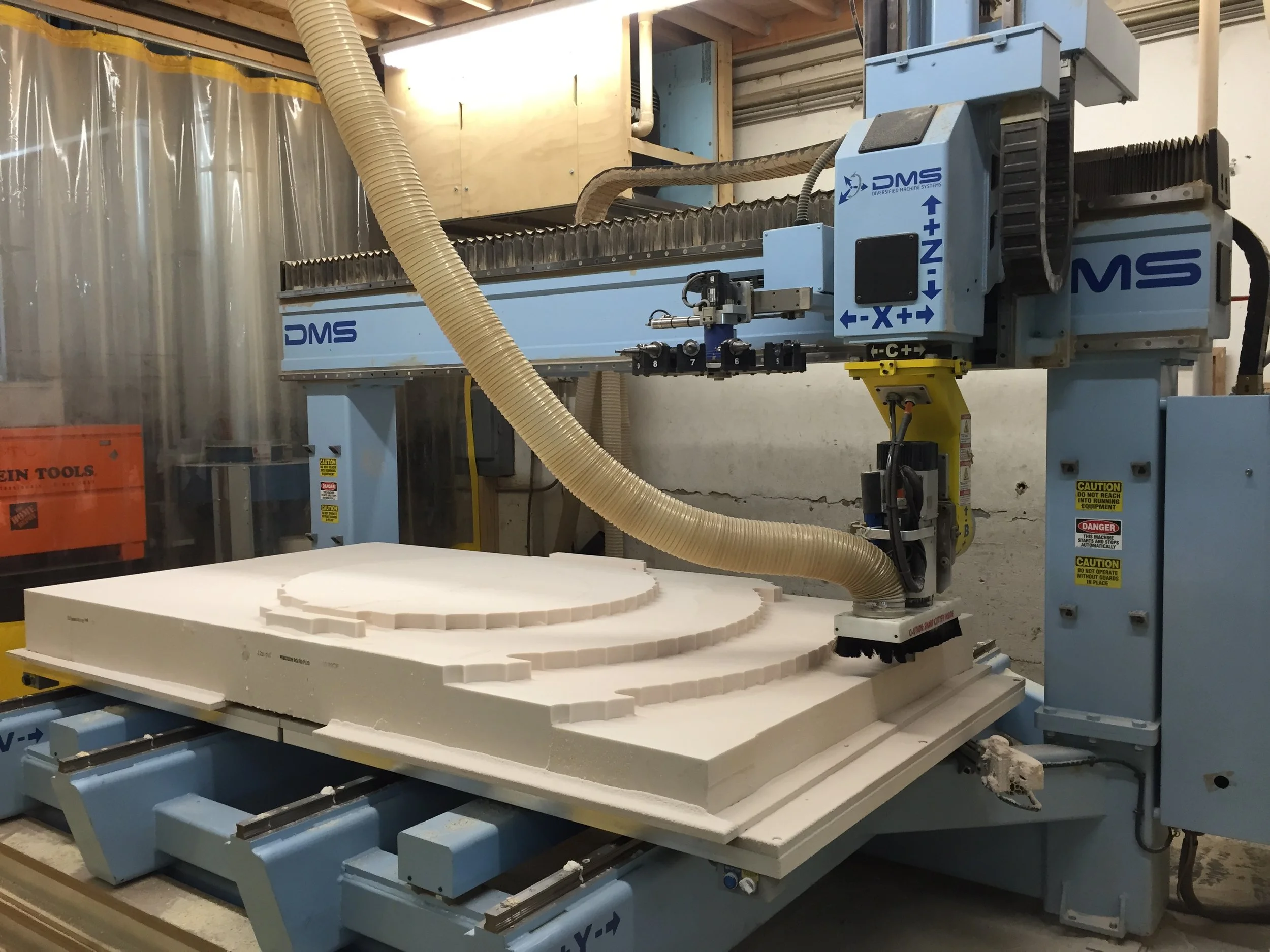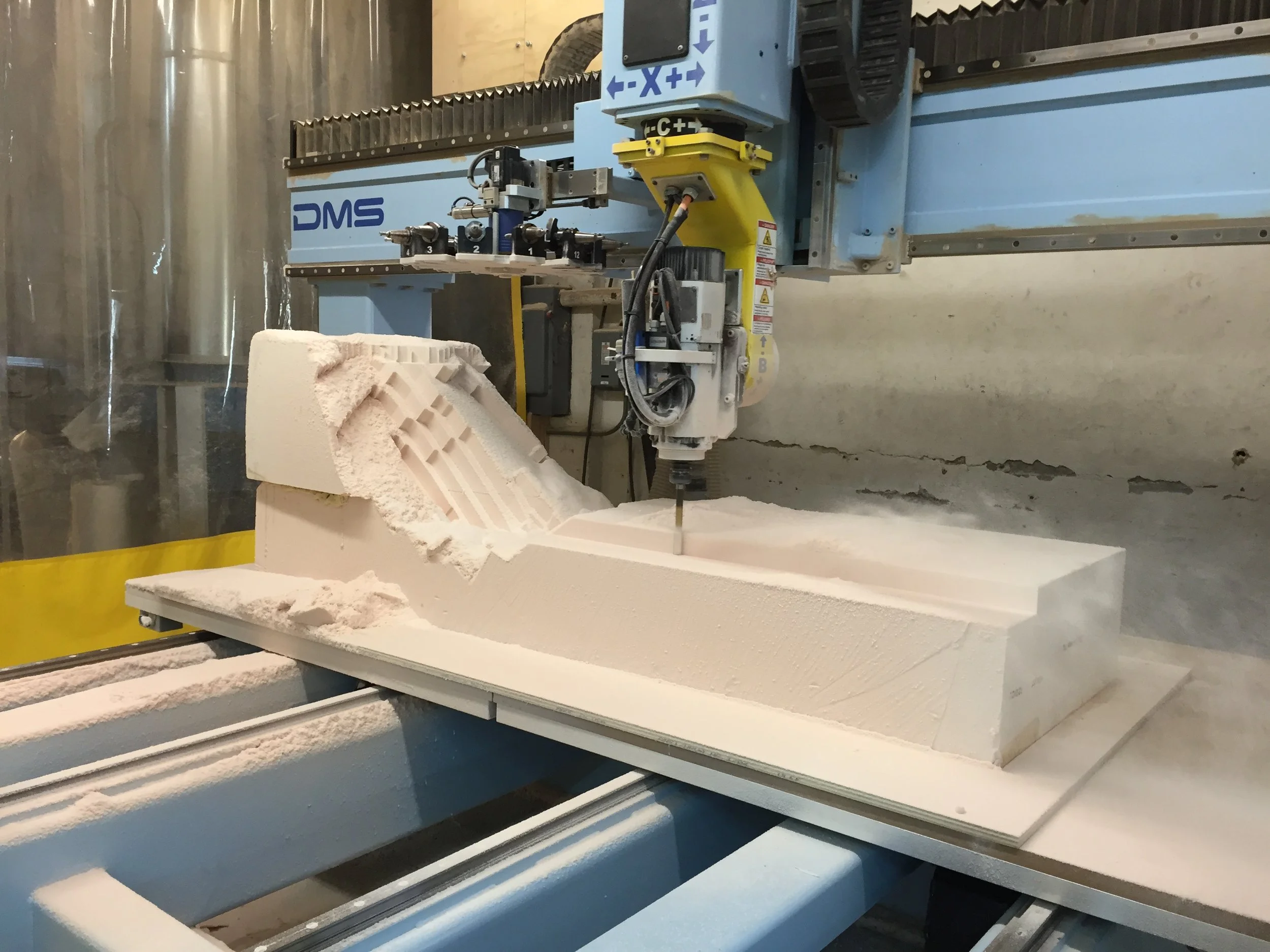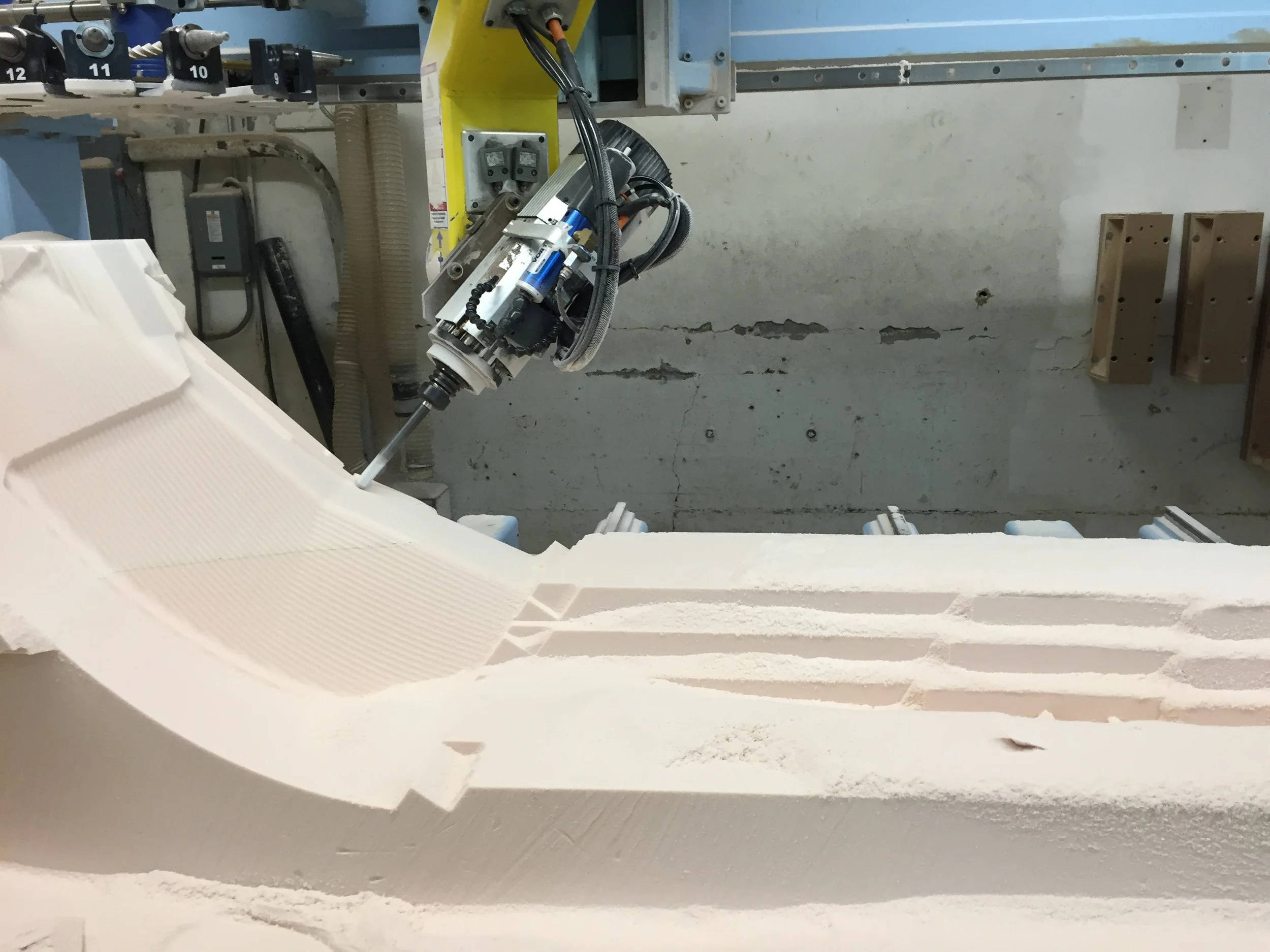 I was responsible for all CNC operations, which included hiring, training and managing two CNC operators to run the machine for 16 continuous hours a day, which was necessary for this project. Simultaneously, I worked with the project leads to ensure that all deadlines were met. In addition, I engineered the foam molds that were used to cast the GFRG panels on the interior. I was responsible for programming all assets of the project, including each unique foam mold, many of which were larger than the machine and weighed upwards of 500lbs. These pieces needed to be rotated and re-referenced on the CNC machine with zero loss in accuracy.